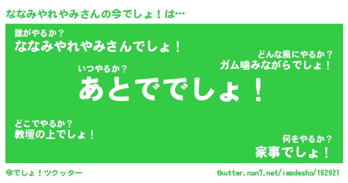 | 胡散臭い通販商品みたいなあだ名 | 『モテモテ間違いなし霊験あらたかなお札…その名も「ななみやれやみ」』 |