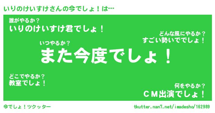 | 胡散臭い通販商品みたいなあだ名 | 『億万長者になれるブレスレット…その名も「いりのけいすけ」』 |