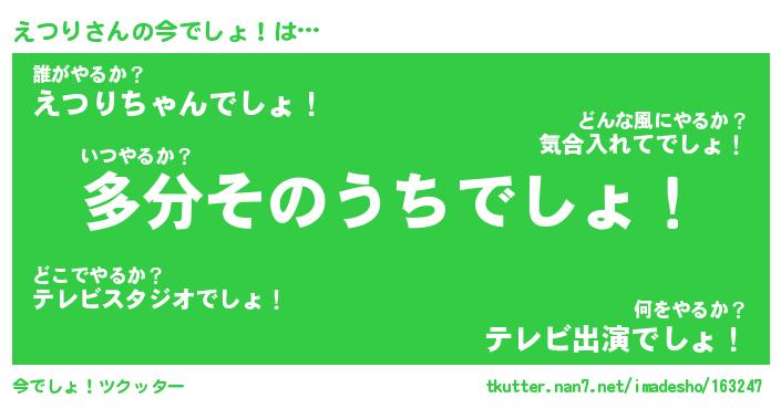 | 肩書あだ名 | 『えつり御曹司』『えつり国家主席』 |