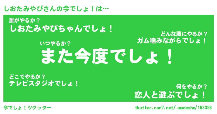 | ヘコむあだ名 | 『しおにゅー』『レバニラ』『しおを』 |