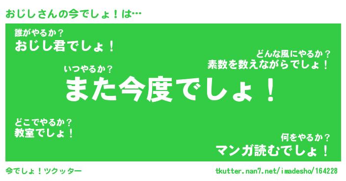 | 胡散臭い通販商品みたいなあだ名 | 『億万長者になれるブレスレット…その名も「おじし」』 |
