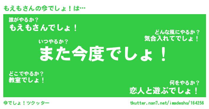 | 意味不明あだ名 | 『ペロリンもえも』『もえもフォーエバー』 |