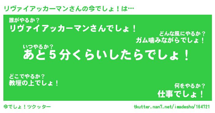 | 胡散臭い通販商品みたいなあだ名 | 『モテモテ間違いなし霊験あらたかなお札…その名も「リヴァイアッカーマン」』 |