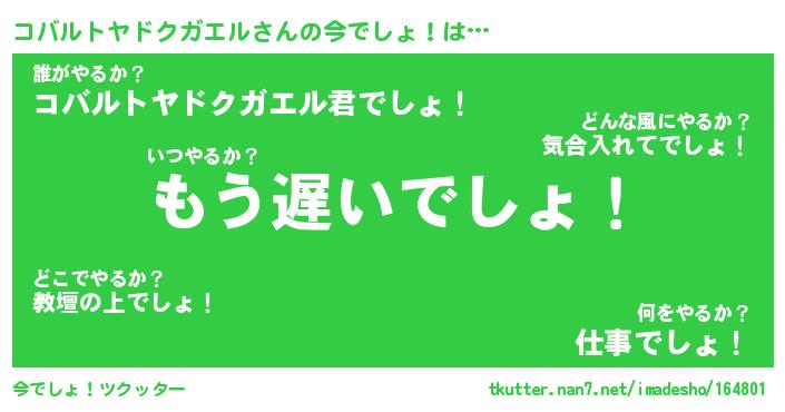 | 胡散臭い通販商品みたいなあだ名 | 『必ず成功するブレスレット…その名も「コバルトヤドクガエル」』 |