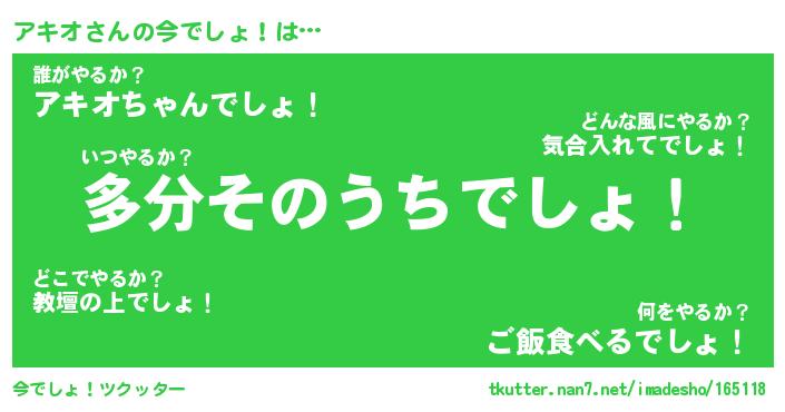 | 意味不明あだ名 | 『ペロリンアキオ』『アキオフォーエバー』 |