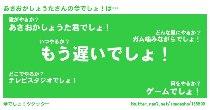 | 肩書あだ名 | 『あさおかしょうた店長』 |