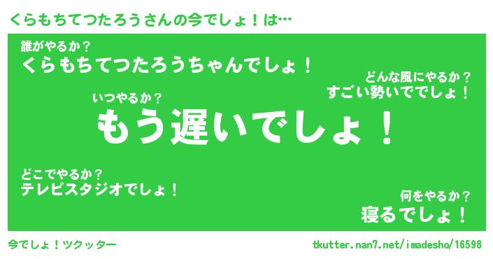 | 胡散臭い通販商品みたいなあだ名 | 『モテモテ間違いなしブレスレット…その名も「くらもちてつたろう」』 |