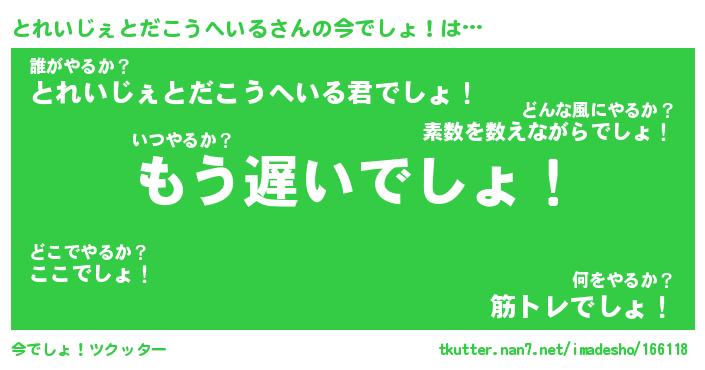 | 伝説のあだ名 | 『伝説のスナイパーとれいじぇとだこうへいる』 |