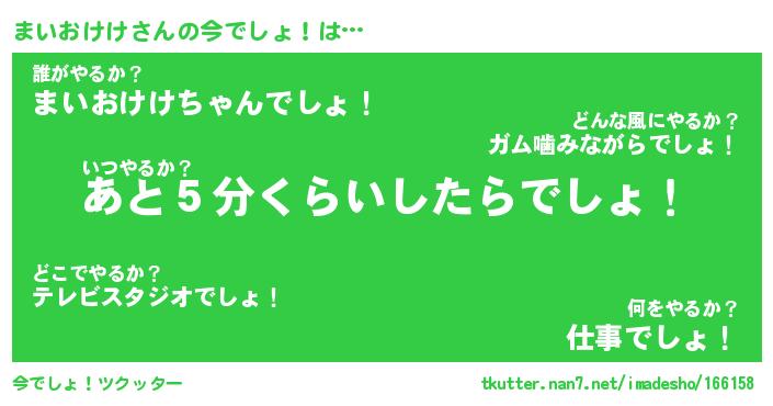 | 恥ずかしいあだ名 | 『プリティーまいおけけ』『まいっちょ』 |