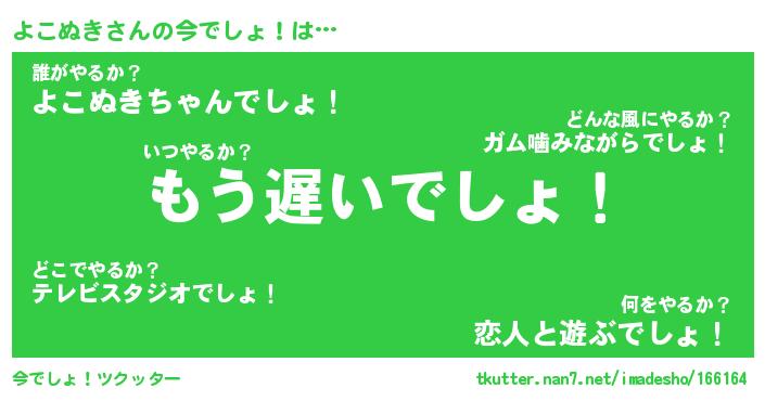 | 意味不明あだ名 | 『ペロリンよこぬき』『永久保存よこぬき』 |