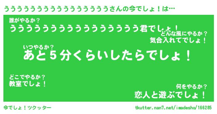 | ツイッター | ううううううううううううううううさんのツイッターID『dendenmushi_kun』 |