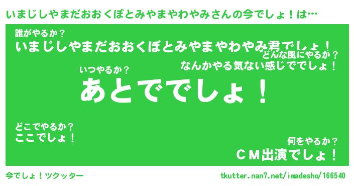 | ヘコむあだ名 | 『いまもー』『なまこ酢』『いまを』 |