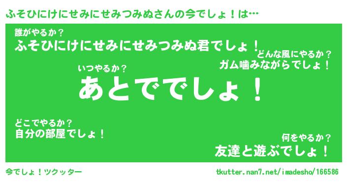| 料理風あだ名 | 『節約★ふそひにけにせみにせみつみぬと油揚げの玉子丼』 |