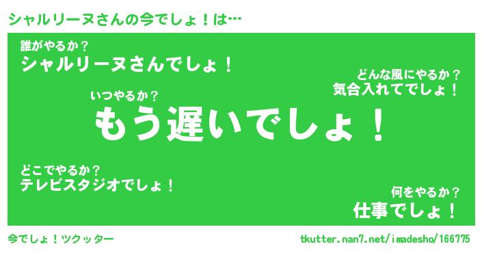 | 胡散臭い通販商品みたいなあだ名 | 『必ず成功するブレスレット…その名も「シャルリーヌ」』 |