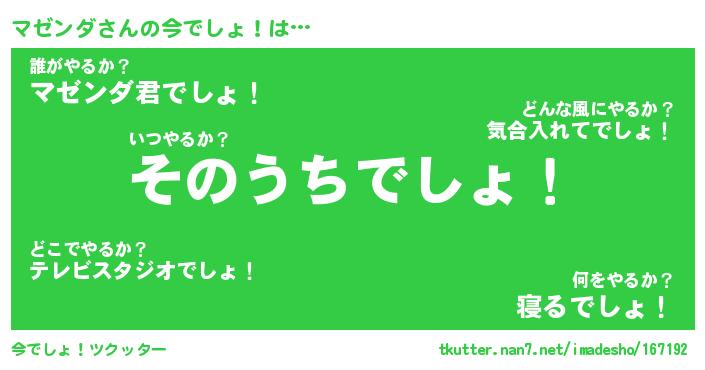 | 意味不明あだ名 | 『ペロリンマゼンダ』『永久保存マゼンダ』 |