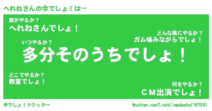 | ヘコむあだ名 | 『へれにゅー』『つくし』 |