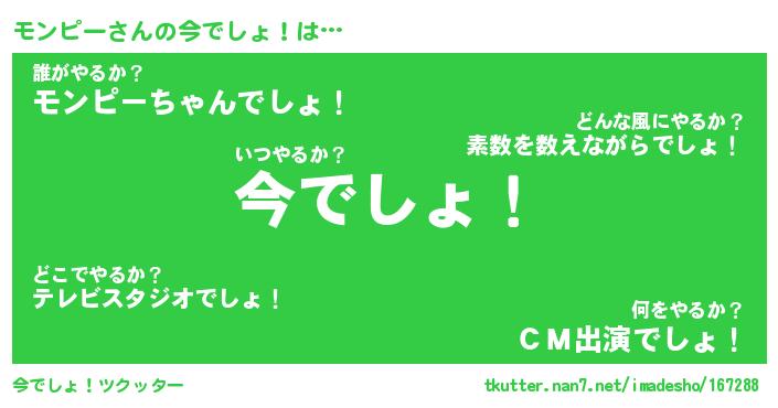 | 肩書あだ名 | 『モンピー店長』『モンピー総理大臣』 |