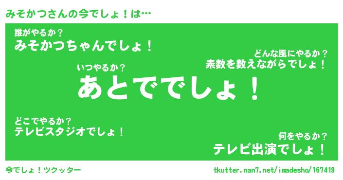 | ヘコむあだ名 | 『みそもー』『酢こんぶ』『みそを』 |