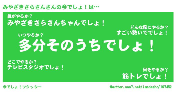 | 伝説のあだ名 | 『不死鳥のスナイパーみやざきさらさん』 |