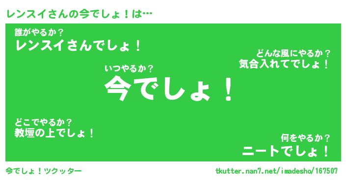 | 意味不明あだ名 | 『ペロリンレンスイ』『永久保存レンスイ』 |