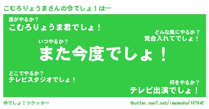 | 恥ずかしいあだ名 | 『プリティーこむろりょうま』『こむちん』 |