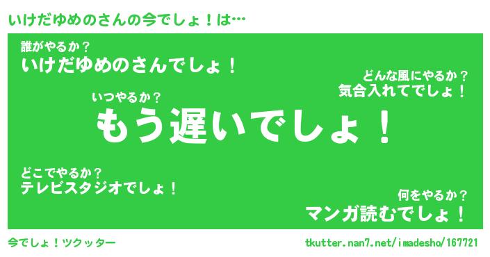 | ヘコむあだ名 | 『いけにゅー』『つくし』『いけっ子』 |