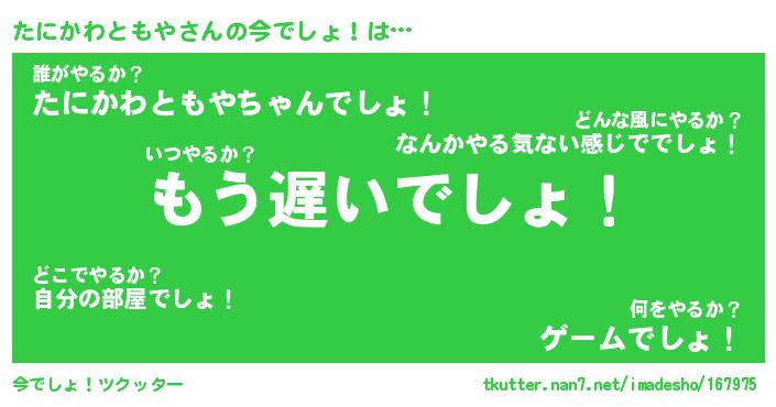 | 肩書あだ名 | 『たにかわともや御曹司』 |