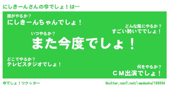 | ヘコむあだ名 | 『にしにゅー』『酢こんぶ』『にしお』 |