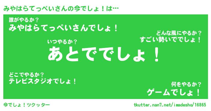 | 胡散臭い通販商品みたいなあだ名 | 『モテモテ間違いなし水晶球…その名も「みやはらてっぺい」』 |