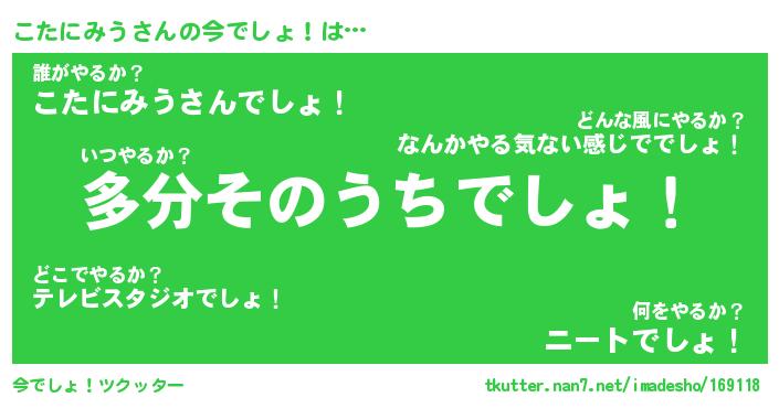 | ヘコむあだ名 | 『こたにゅー』『つくし』『こた太郎』 |