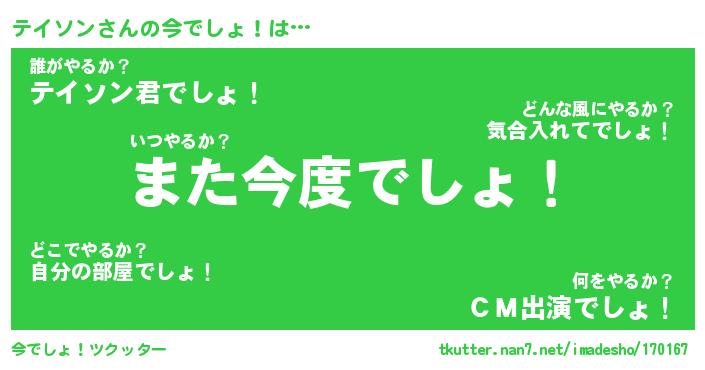 | ヘコむあだ名 | 『テイふぇ~』『豆乳』『テイっ子』 |