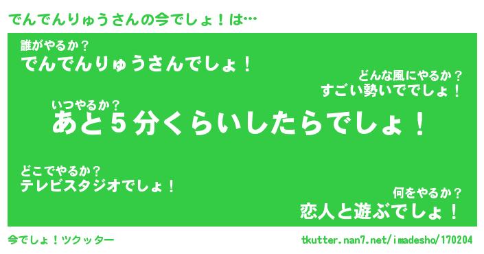 | 料理風あだ名 | 『節約★でんでんりゅうと油揚げの玉子丼』 |