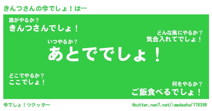 | ヘコむあだ名 | 『きんもー』『つくし』『きんを』 |