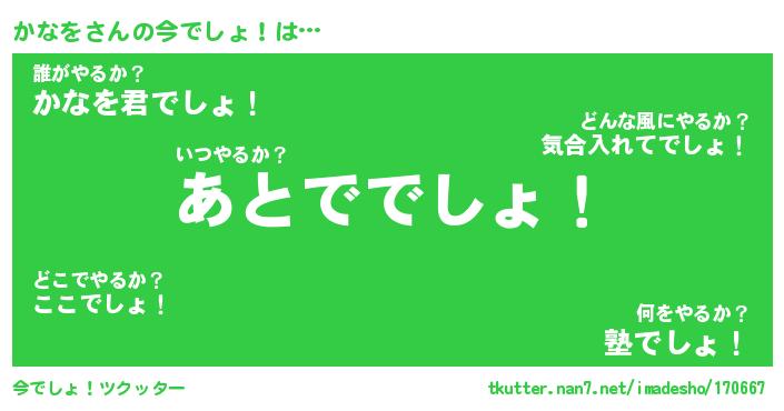 | 2回繰り返すあだ名 | 『かなかな』『かかなな』『こそこそ』 |