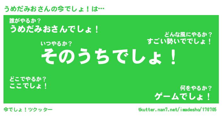 | ファンタジー風あだ名 | 『ウメフェル』『エターナルウメダミオー』 |
