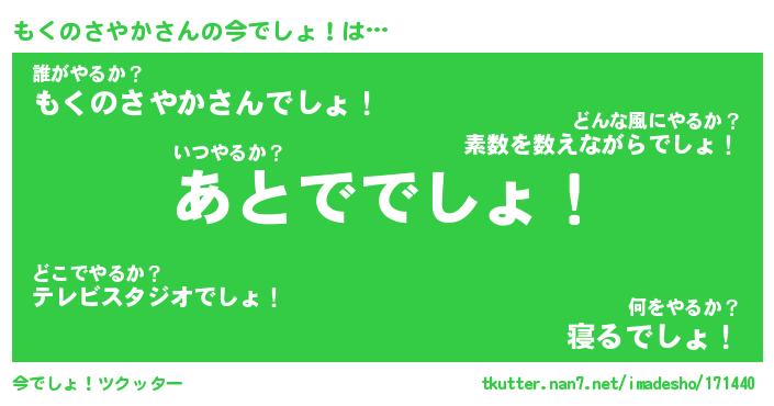 | 胡散臭い通販商品みたいなあだ名 | 『モテモテ間違いなし霊験あらたかなお札…その名も「もくのさやか」』 |
