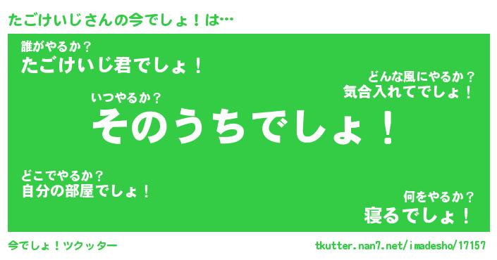 | ヘコむあだ名 | 『たごにー』『なまこ酢』『たご太郎』 |
