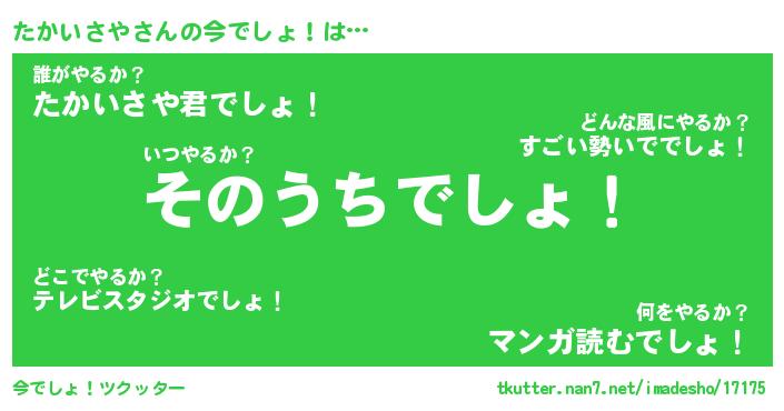 | 胡散臭い通販商品みたいなあだ名 | 『必ず成功するブレスレット…その名も「たかいさや」』 |