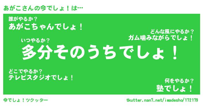 | ヒーロー風カッコイイあだ名 | 『スーパーアガコ』『ウルトラあがこマン』 |