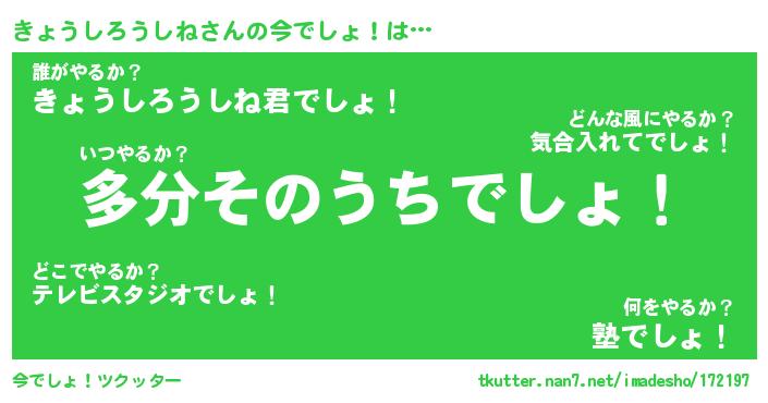 | 胡散臭い通販商品みたいなあだ名 | 『モテモテ間違いなし霊験あらたかなお札…その名も「きょうしろうしね」』 |