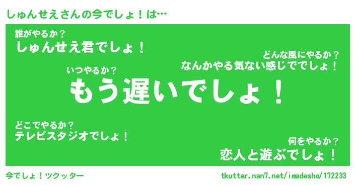 | 胡散臭い通販商品みたいなあだ名 | 『必ず成功するブレスレット…その名も「しゅんせえ」』 |