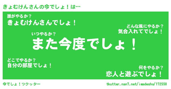 | 肩書あだ名 | 『きょむけん社長』『きょむけん総理大臣』 |