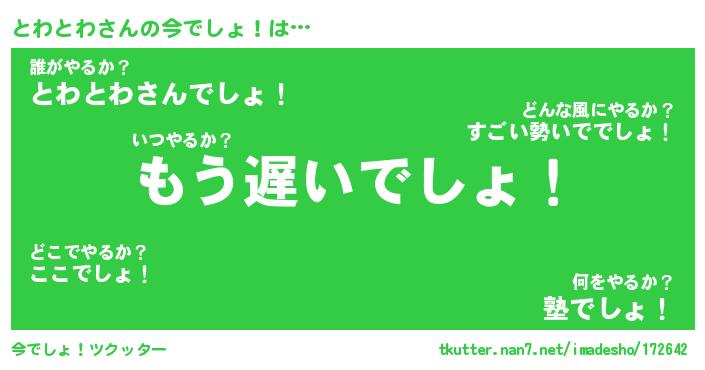 | ポケモン風あだ名 | 『トワチュウ』『トワトダネ』 |