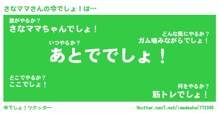 | 意味不明あだ名 | 『ペロリンさなママ』『永久保存さなママ』 |