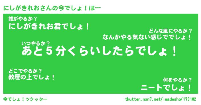| ヘコむあだ名 | 『にしもー』『豆乳』『にしっちょ』 |