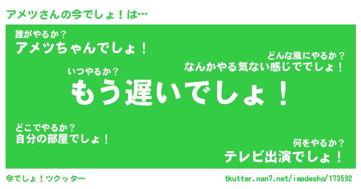 | 意味不明あだ名 | 『ペロリンアメツ』『アメツフォーエバー』 |