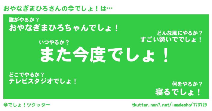 | 胡散臭い通販商品みたいなあだ名 | 『億万長者になれるブレスレット…その名も「おやなぎまひろ」』 |