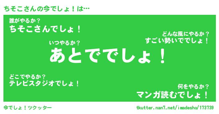 | ヘコむあだ名 | 『ちそふぇ~』『つくし』 |