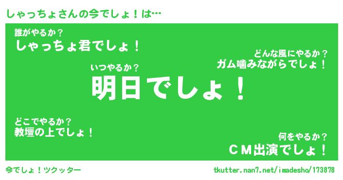 | ヘコむあだ名 | 『しゃもー』『なまこ酢』『しゃお』 |