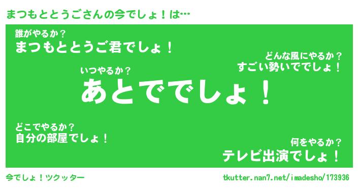 恥ずかしいあだ名 | 『プリティーまつもととうご』『まつちん』 |